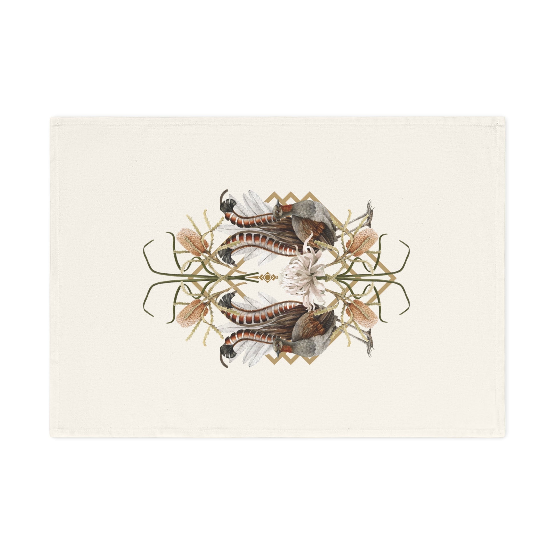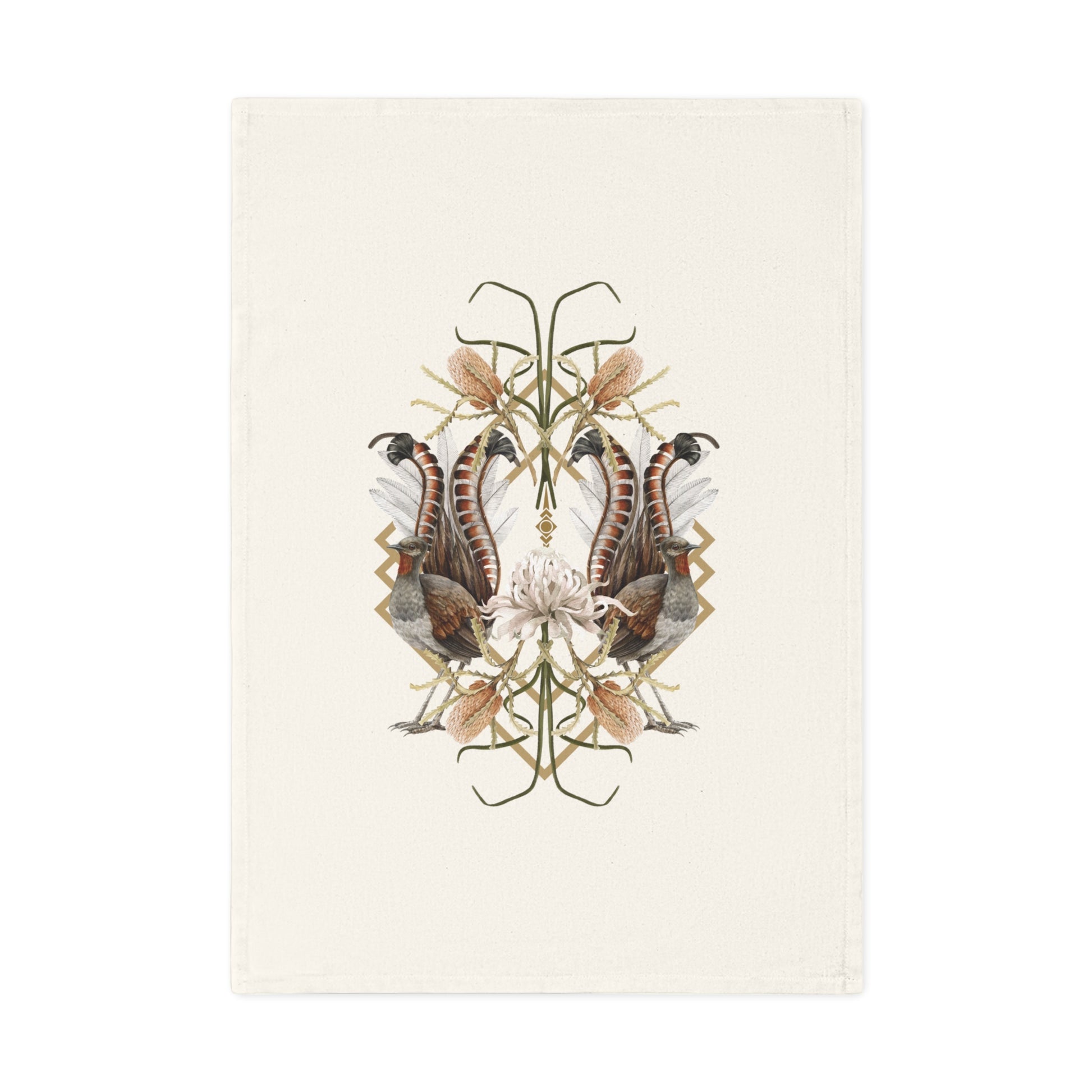 Kitchen Tea Towel - Australian Lyrebird and Native Florals Design